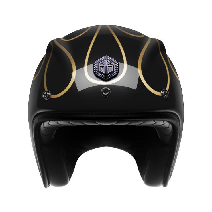 Shiny and reflecting as a mirror, all the assets of a black sports car into one carbon fibre helmet with classics motorcycle white edgings. The craftsmanship of our Open face helmet represents the pinnacle of style and expertise by the Guang workshop. Despite its twinge of retro style and simplicity, it shows a modern design and meets the highest demands in regards to safety and quality of the manufactured materials. For the open face helmet, there are visors in three different shadings available, clear, light smoke and dark smoke. They can be attached to the metal snaps on the helmet and allow you to ride comfortably with higher speeds, too.