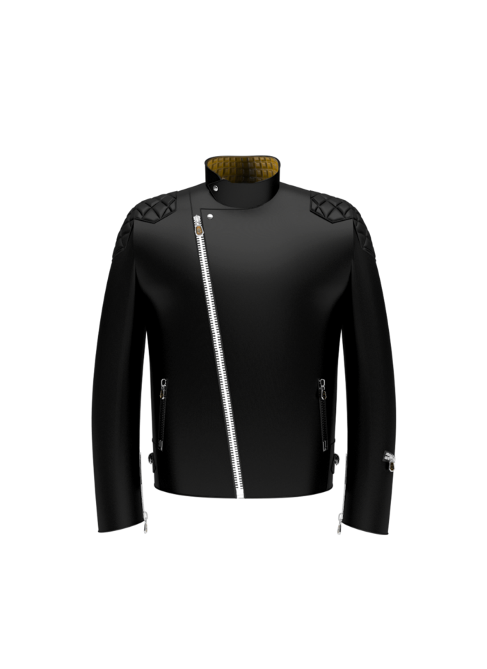 You need a premium leather jacket to fit with your GUANG helmet. That’s why we have introduced a caferacer jacket for all GUANG pilotes. We produce the jacket ourselves in our workshop. The jacket is made either of lamb or calf leather depending on our seasonal production, interior is silk, buckles are made of titanium and officer collar with a particular epoxy puller on the slanted zipper.